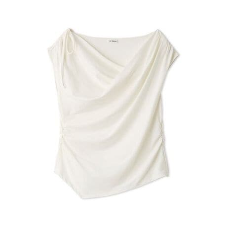 デコルテを優雅に彩るドレーピングが、大人の色香を漂わせるカットソー。右肩に施したシャーリングがアクセントとなり、肩周りの見え方にニュアンスのある変化をプラスします。そのままの着用はもちろん、右肩の調整やワンショルダーとしても楽しめる3WAY仕様で、シーンに合わせた多彩なスタイリングが可能。計算されたドレープが身体のラインを美しく補正し、シンプルながらも圧倒的な存在感を放つ一着に仕上げました。