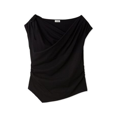 デコルテを優雅に彩るドレーピングが、大人の色香を漂わせるカットソー。右肩に施したシャーリングがアクセントとなり、肩周りの見え方にニュアンスのある変化をプラスします。そのままの着用はもちろん、右肩の調整やワンショルダーとしても楽しめる3WAY仕様で、シーンに合わせた多彩なスタイリングが可能。計算されたドレープが身体のラインを美しく補正し、シンプルながらも圧倒的な存在感を放つ一着に仕上げました。