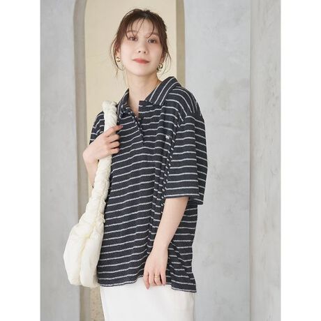 肌触りの良い柔らかいパイル生地を使用したポロトップスは適度にラフなオーバーシルエットでこなれた雰囲気が魅力。