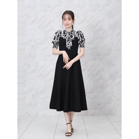 ボウタイリボンが顔周りを華やかに彩る、エレガントなドッキングワンピース。