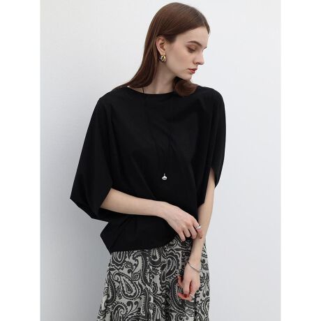 なめらかな表面感と落ち感が魅力のドルマンプルオーバー。ポンチョのようなゆったりとしたシルエットと自然なドレープを生み出しながらも、どこか女性らしい着こなしを演出します。ほどよく広がる袖が二の腕をカバーしつつ、動きのある軽やかな印象に。首元はすっきりとしたクルーネックに仕上げ、袖の個性を際立たせました。リラクシーな着心地で、おでかけからワンマイルにも活躍してくれる万能アイテムです。