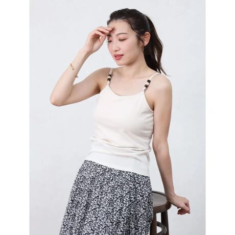 ストラップのマーブルビーズが目を惹く、カップインキャミソール。