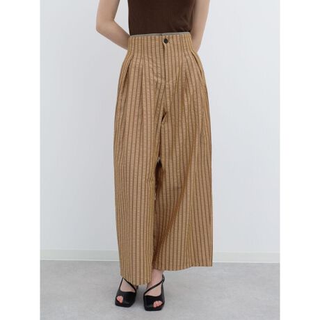 凹凸感のある生地がシーズンムードを演出するワイドパンツ。縦ラインを強調するストライプ柄が、ワイドなシルエットでも自然なスタイルアップを叶えます。腰回りもすっきりと見せてくれるウエストデザインで、タックインスタイルにもおすすめ◎、きれい見えとリラックスした履き心地を両立。デイリーに使いやすく、大人らしいきちんと感もプラスした一枚です。