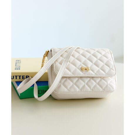 ・キルティングステッチを施した高級感のある合皮のショルダーバッグ。
