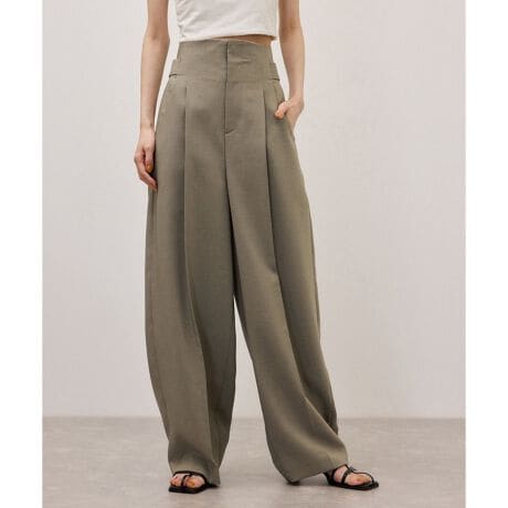 ハイウエストで、ややバレルシルエットのスラックス。