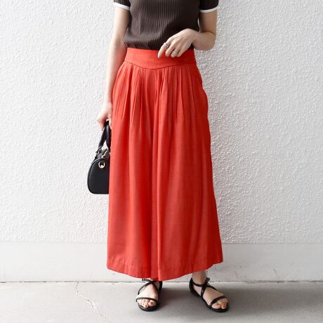 スカート見えのキュロットパンツなので、ややキレイめなアイテムと合わせて着こなすのがおすすめ。