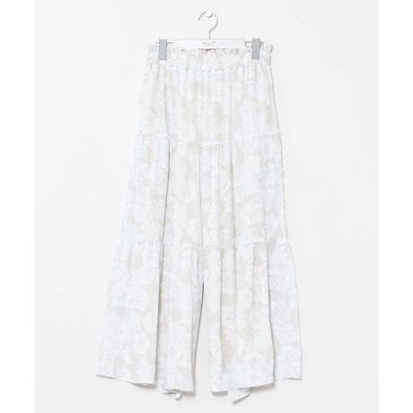 [型番:4CA-6213-2026]軽やかなシアー感が魅力の楊柳(ようりゅう)素材パンツ。ウエストはゴム仕様でリラックスしたはき心地を叶えます。ティアードの切り替えデザインが生み出すボリュームシルエットが華やかさを演出。ハワイに咲く花をモチーフにした三柄展開で、リゾートムード漂うコーディネートにおすすめです。