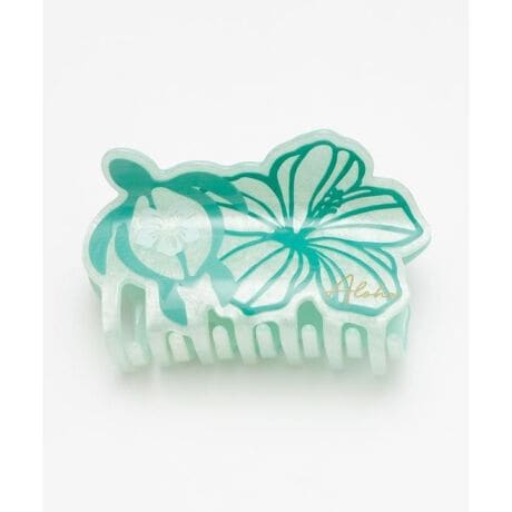 [型番:48BZ6203-2026]ハイビスカスとホヌを組み合わせた爽やかなヘアクリップ。大海の守り神であるホヌをお守りのように身に着けられるデザインです。華やかなモチーフがまとめ髪に映え、バッグに付けてチャームとして楽しむのもおすすめです。