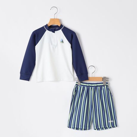 ラッシュガードとショーツがセットになった男の子向けのスイムウェア