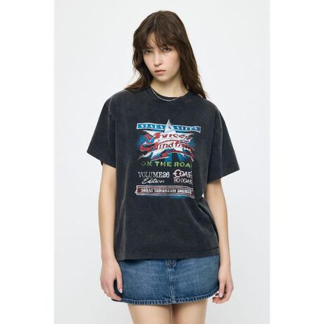 【MOUSSY VOL26 TOUR TEE/マウジーボリューム26ツアーティーシャツ】■ポイント&ディテールライブツアーの空気感をそのまま落とし込んだ存在感のあるグラフィックが魅力のMOUSSY26周年を記念したバースディTシャツ。ヴィンテージライクな配色と前後プリントで一枚でも主役になるアイテムです。かすれ感のあるプリントや多色使いで、着込んだようなヴィンテージムードを表現。肌なじみの良い素材でロングシーズン活躍します。■スタイリング抜け感のあるスタイリングが叶う程よくゆとりのあるシルエットと、トレンド感のあるタイトめなサイズとの2サイズ展開でお好みのバランスで着こなせます。デイリーにはもちろん、レジャーやイベントなどアクティブなシーンにもおすすめです。