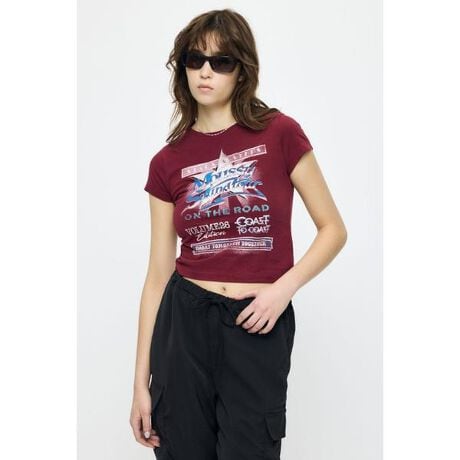 【MOUSSY VOL26 TOUR TEE/マウジーボリューム26ツアーティーシャツ】■ポイント&ディテールライブツアーの空気感をそのまま落とし込んだ存在感のあるグラフィックが魅力のMOUSSY26周年を記念したバースディTシャツ。ヴィンテージライクな配色と前後プリントで一枚でも主役になるアイテムです。かすれ感のあるプリントや多色使いで、着込んだようなヴィンテージムードを表現。肌なじみの良い素材でロングシーズン活躍します。■スタイリング抜け感のあるスタイリングが叶う程よくゆとりのあるシルエットと、トレンド感のあるタイトめなサイズとの2サイズ展開でお好みのバランスで着こなせます。デイリーにはもちろん、レジャーやイベントなどアクティブなシーンにもおすすめです。