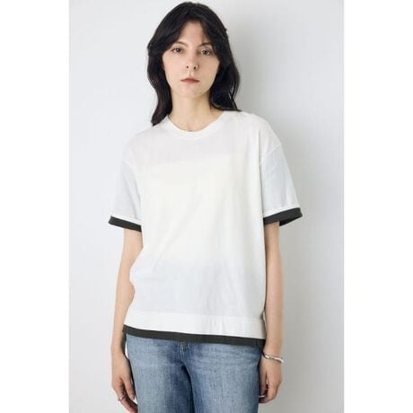 ■ドライタッチレイヤードライクTシャツ■ポイントドライタッチな質感が魅力の、レイヤード風デザインTシャツ。1枚で重ね着しているような見え方で、シンプルながらこなれ感を演出します。■ディテールさらっとした肌触りのドライタッチ素材を使用し、暑い季節でも快適な着心地に。裾部分のレイヤード風デザインが程よいアクセントになり、コーディネートに奥行きをプラスします。程よくゆとりのあるシルエットで、リラックス感のある着用感に仕上げています。■スタイリングデニムやカーゴパンツと合わせたカジュアルスタイルはもちろん、スラックスと合わせたきれいめコーディネートにもおすすめ。1枚でサマになるため、シンプルなボトムスと合わせるだけでバランスよくまとまります。■生地強い力で撚りをかけた強撚糸を使用しているため、シャリ感と上品な光沢感があります。「極めてサラッとした肌触り」と「優れた肌離れ(ドライ感)」が特徴です。透け感:O/WHTはややあり裏 地:なし伸縮性:ややあり光沢感:なし[注意事項]※画像の商品はサンプルです。実際の商品と仕様、加工が若干異なる場合があります。※画像の商品は光の照射や角度、お使いのモニター環境により、実物と色味が異なる場合がございます。※着用、お取り扱いの際は、アテンションタグをご確認ください。