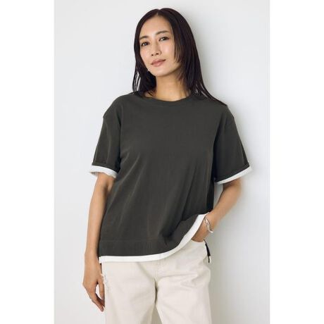 ■ドライタッチレイヤードライクTシャツ■ポイントドライタッチな質感が魅力の、レイヤード風デザインTシャツ。1枚で重ね着しているような見え方で、シンプルながらこなれ感を演出します。■ディテールさらっとした肌触りのドライタッチ素材を使用し、暑い季節でも快適な着心地に。裾部分のレイヤード風デザインが程よいアクセントになり、コーディネートに奥行きをプラスします。程よくゆとりのあるシルエットで、リラックス感のある着用感に仕上げています。■スタイリングデニムやカーゴパンツと合わせたカジュアルスタイルはもちろん、スラックスと合わせたきれいめコーディネートにもおすすめ。1枚でサマになるため、シンプルなボトムスと合わせるだけでバランスよくまとまります。■生地強い力で撚りをかけた強撚糸を使用しているため、シャリ感と上品な光沢感があります。「極めてサラッとした肌触り」と「優れた肌離れ(ドライ感)」が特徴です。透け感:O/WHTはややあり裏 地:なし伸縮性:ややあり光沢感:なし[注意事項]※画像の商品はサンプルです。実際の商品と仕様、加工が若干異なる場合があります。※画像の商品は光の照射や角度、お使いのモニター環境により、実物と色味が異なる場合がございます。※着用、お取り扱いの際は、アテンションタグをご確認ください。