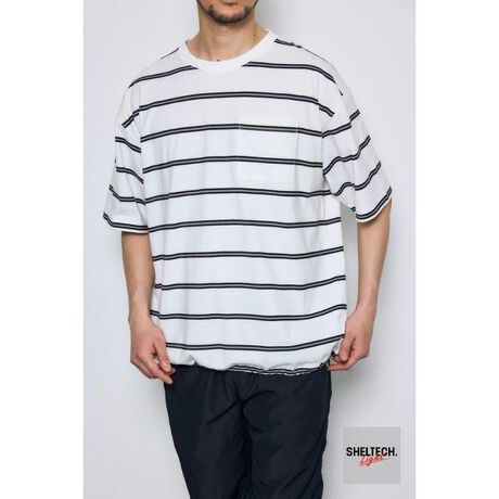 ■『SHELTECH Light(シェルテック ライト)』とは機能素材の代表格「SHELTECH」と共同開発した、AZUL BY MOUSSYオリジナルファブリックです。SHELTECHの吸湿速乾、UVカット、遮熱、接触冷感を保ちつつ、原料をナイロン糸から特殊加工して紡績されたポリエステル糸にアップデートしました。汗ばむ季節でもさらりとした着心地を約束します。■SHELTECH Light ポケット付きTシャツ■ポイントプレーティング天竺と、AZULオリジナル開発の機能素材「SHELTECH Light」を使用したポケットTシャツ。■ディテール胸ポケットが程よいアクセントになり、見た目はシンプルで機能性に優れた一枚です。接触冷感で爽快、UVカットで日焼け対策、遮熱で熱こもりを抑制、吸水速乾で汗冷えを防ぎます。S/M/Lのサイズ展開で幅広いニーズに対応できます。■スタイリング単品でパンツと合わせてクリーンなデイリースタイル。アウトドアや旅行、アクティブシーンでは機能を活かした快適な一枚着に。シャツや軽いジャケットのインナーとしても使いやすく、胸ポケットが小物の出し入れに便利です。SHELTECHシリーズで合わせてコーディネートもおすすめです。■生地2本の糸を同時に引き入れて編むことで、表面はきれいで適度なハリ感がありつつ、裏面が柔らかく肌に馴染む、しっかりとした厚みを持つ上品な生地感が特徴のプレーティング天竺です。透けにくく、ストレッチ性に優れ、生地に張り感や厚み、しっかり感が増します。「SHELTECH Light」機能糸を使用。接触冷感・UVカット・遮熱・吸水速乾の4つの機能を備え、暑い季節でも快適な着用感を実現します。透け感:なし裏 地:なし伸縮性:ややあり光沢感:なし[注意事項]※画像の商品はサンプルです。実際の商品と仕様、加工が若干異なる場合があります。※画像の商品は光の照射や角度、お使いのモニター環境により、実物と色味が異なる場合がございます。※着用、お取り扱いの際は、アテンションタグをご確認ください。