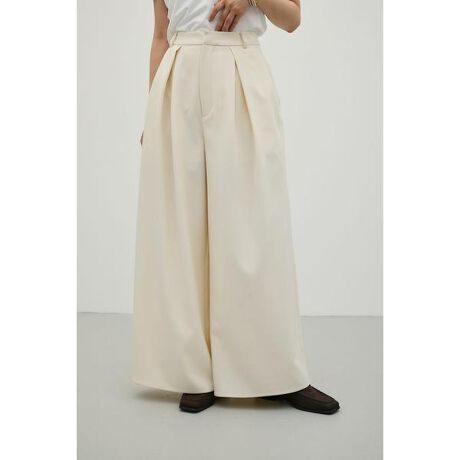 モデル身長164cm(Mサイズ着用)ロ□ウエストデザインがトレンド感を演出するタックワイドパンツ。フロントに施したタックが立体感を生み、ワイドながらもすっきりとしたシルエットに仕上げました。程よくルーズなサイズ感で、気になる腰回りや脚のラインを自然にカバー。リラックス感のある履き心地ながら、きちんと見えも叶える一枚です。コンパクトなトップスやクロップド丈と合わせれば、バランスの良い旬なスタイリングに。カジュアルからきれいめまで幅広いコーディネートに対応し、デイリーに活躍します。透け感なし、ストレッチなし。【お手入れ方法】マシンウォッシュ可