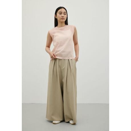モデル身長164cm(Mサイズ着用)ロ□ウエストデザインがトレンド感を演出するタックワイドパンツ。フロントに施したタックが立体感を生み、ワイドながらもすっきりとしたシルエットに仕上げました。程よくルーズなサイズ感で、気になる腰回りや脚のラインを自然にカバー。リラックス感のある履き心地ながら、きちんと見えも叶える一枚です。コンパクトなトップスやクロップド丈と合わせれば、バランスの良い旬なスタイリングに。カジュアルからきれいめまで幅広いコーディネートに対応し、デイリーに活躍します。透け感なし、ストレッチなし。【お手入れ方法】マシンウォッシュ可