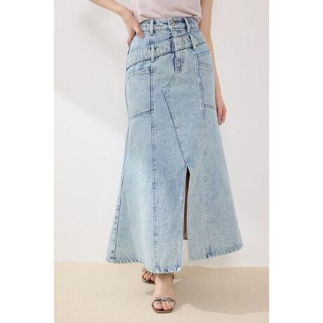 【ダブルウエストデザインが拘りポイントのデニムマーメイドスカート】■ポイントセンターのジップを中心にしたダブルベルト風の見せかけデザインがポイントのデニムマーメイドスカート。着脱の時も簡単にしたかったのでジップを中心にした仕様が拘りポイント。カラーバリエーションとして、ライトブルーは白味のある加工感が拘りで、ライトブルーに対してピンクのステッチを効かせ遊び心を足しカジュアルなイメージにしました。ダークブルーのワンウォッシュは綺麗めにするため、アイボリーの配色ステッチで製作しました。■ディテールサイドのポケットディテールを増やし、ワークっぽい雰囲気に仕上げました。またヒップから裾にかけて綺麗なシルエットにするためサイジングにも拘りました。センシュアルなラインが出るのと、フロントの深いスリットでより女性らしさが増し、デートにもお勧めです。■スタイリング短丈のTシャツ合わせや、ニットトップス、布帛のブラウスなどを合わせて幅広いコーディネートが叶います。■生地透け感:なし裏 地:なし伸縮性:なし光沢感:なし厚 さ:なし■商品のお気に入り登録お気に入りアイテムの再入荷・在庫1点などの通知を受け取ることができます。[注意事項]※画像の商品はサンプルです。実際の商品と仕様、加工が若干異なる場合があります。※画像の商品は光の照射や角度、お使いのモニター環境により、実物と色味が異なる場合がございます。※着用、お取り扱いの際は、アテンションタグをご確認ください。
