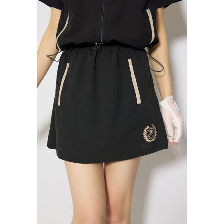 【軽やかに着れるジップポイントスカート】■ポイントスポーティーな印象のタフタ素材を使用した台形型スカート。軽量で動きやすく、さらに伸縮性も兼ね備えているため、快適に着用できる1枚です。フロントにはあえてジップデザインのポケットを配置し、機能性はもちろんですが、デザインのアクセントに◎シンプルなベースながら、ロゴやジップの配色が効いたバイカラーデザインがコーディネートにメリハリをプラスします。■ディテールウエストはオールゴム使用でストレスフリーな履き心地ですが、ドローストリングでサイズ調整も可能です。■スタイリング112JSA30-0081 バイカラージップポイントブルゾン とのセットアップでの着用がおすすめです。インナーショーパン付きなので、1枚で着用可能です。■生地透け感:あり裏 地:なし伸縮性:ややあり光沢感:なし厚 さ:薄め■商品のお気に入り登録お気に入りアイテムの再入荷・在庫1点などの通知を受け取ることができます。[注意事項]※画像の商品はサンプルです。実際の商品と仕様、加工が若干異なる場合があります。※画像の商品は光の照射や角度、お使いのモニター環境により、実物と色味が異なる場合がございます。※着用、お取り扱いの際は、アテンションタグをご確認ください。
