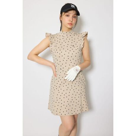 【着るだけでスタイルUPが叶う、定番美シルエットのワンピース】■ポイントRIENDA GOLFでも大人気の「プリンセスライン」を施した、女性らしいシルエットのワンピース。腰より少し高い位置にダーツを入れることで、スタイルアップ効果も抜群。身体のラインをきれいに見せ、360度どこから見ても美しいシルエットを演出します。BLKとBEGにはドット柄にし、大人フェミニンな雰囲気に。L/BLUは爽やかなカラーで、上品で清涼感のある印象に仕上げてくれます。■ディテール首元にはバックスタイルにリボンディテールをプラスし、後ろ姿まで華やかな印象に。袖はフリルスリーブになっており、二の腕をさりげなくカバーしてくれるため、ノースリーブがに苦手な方でも着やすいデザインです。両サイドとヒップにポケットも付けているので、機能性にもこだわっています。■スタイリング1枚で着用可能ですが、インナーはついていないため、インナーパンツの着用がおすすめです。背面の腰位置にベルトループも付けているので、お好みでベルトの着用もできる仕様になってます。■生地透け感:なし裏 地:なし伸縮性:あり光沢感:なし厚 さ:普通■商品のお気に入り登録お気に入りアイテムの再入荷・在庫1点などの通知を受け取ることができます。[注意事項]※画像の商品はサンプルです。実際の商品と仕様、加工が若干異なる場合があります。※画像の商品は光の照射や角度、お使いのモニター環境により、実物と色味が異なる場合がございます。※着用、お取り扱いの際は、アテンションタグをご確認ください。