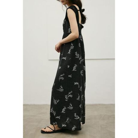 モデル身長164cm(Mサイズ着用)キャミソールをレイヤードしたようなデザインで、1枚でスタイリングが完成する存在感のあるワンピース。BLKとWHTはオリジナルのフラワープリントは線画タッチで、大人っぽく洗練された印象に仕上げています。胸下の切り替えから広がるシルエットが、女性らしい一枚。バックファスナー仕様で着脱しやすく、後ろウエストはゴムシャーリングで程よいフィット感に仕上げています。ポリエステルに麻をミックスした素材を使用し、軽やかで扱いやすくナチュラルな風合いが魅力。天然素材特有の節感があり、表情のある仕上がりになっています。ストレッチなし、透け感あり(裏地付き)【お手入れ方法】マシンウォッシュ可