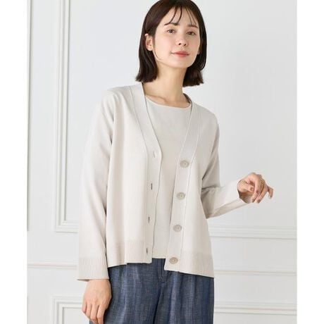 ■デザインストレッチ糸を使用した、程よいハリ感のある天竺編みカーディガン。さらっとした軽やかなタッチで、季節の変わり目にも快適に着られる一枚です。メタルボタンをあしらうことでナチュラルになりすぎず、さりげなく洗練された印象に。ヒップが隠れる着丈とラフに羽織れるサイジングで、デイリーに活躍します。■素材マニラ麻由来の紙から生まれたペーパーヤーンを使用。吸汗性に優れ、汗ばむ季節でもベタつきにくく快適な着心地を叶えます。麻のようなナチュラルな風合いと、軽やかでドライなタッチが魅力です。・水洗い可同素材のジレ品番:6962179015同素材のプルオーバー品番:6962170017■サンプル撮影商品画像の商品はサンプルです。実際の商品とはサイズや色味、素材、デザイン等の仕様が若干変更になる場合がございます。■カラーについては、可能な限り実際の商品に近いカラーにて撮影をおこなっておりますが、照明の関係により実際の製品とは色味が違って見える場合があります。またパソコン・スマートフォンなどの環境により、若干製品と画像のカラーが異なる場合もございます。現物と画像のカラー差異については返品理由となりませんので、予めご了承ください。■サイズ表記はあくまで目安となります。