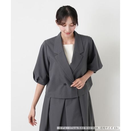 ふんわりとしたボリューム袖が、トレンド感と女性らしさを演出するクロップドジャケット。短い着丈が腰の位置を高く見せ、ワンピースやワイドパンツなど、ボリュームのあるボトムスともバランス良く決まります。縦横に伸びる2WAYストレッチ素材を使用しており、快適な着心地をお約束。ジャケット特有の窮屈さがなく、アクティブな一日もストレスフリーに過ごせます。カーディガン感覚で気軽に羽織れる軽やかさも魅力。さっと羽織るだけで、いつものスタイルをぐっと今年らしくアップデートしてくれる、頼れる一着です。