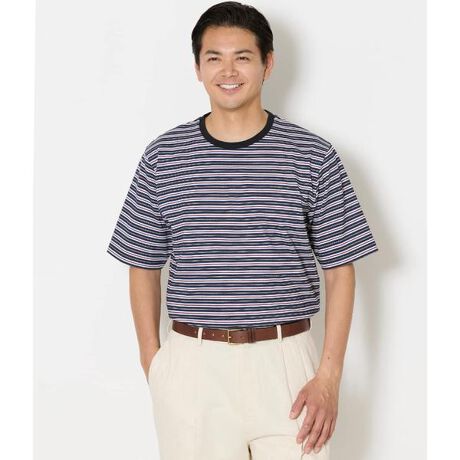 ニューヨーカータータンカラーをボーダーで表現した、ブランドらしさが光るTシャツ。カジュアルでありながらも落ち着いた印象に仕上げ、大人の装いに自然と馴染む一枚です。
