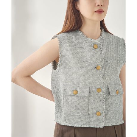 《予約》GIOLICA ツイードメッシュノーカラーベスト