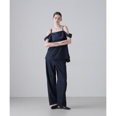 軽く落ち感のあるデニムライクな素材で仕立てられたパンツ。