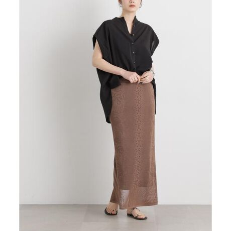 繊細なメッシュレース柄が涼しげな印象のニットスカート。表情のある編み柄と、すっきりとしたIラインシルエットで上品に着こなせる一枚です。