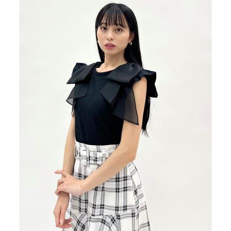 さりげない甘さを添えるショルダーリボンカットトップス【Design】・肩にあしらったリボンデザインがポイントのカットトップス。・ひらりと揺れるフリルスリーブが、華やかでフェミニンな印象をプラス♪・ノースリーブデザインで、すっきりと軽やかに着こなせる一枚。・シンプルな中にフェミニンなアクセントをプラスし、コーディネートを華やかに仕上げます♪・すっきりとしたシルエットでバランスよく着こなせる一枚◎・スカートにもパンツにも合わせやすく、幅広いスタイリングに活躍します!・被り仕様【Fabric】・やわらかく肌なじみの良いカットソー素材を使用。・伸縮性があり、快適な着心地に。・ご自宅でお手入れが出来るのも嬉しいポイント♪・ホワイト、ピンク、ブルー、ブラックの4色展開となります。【Care】手洗い可能