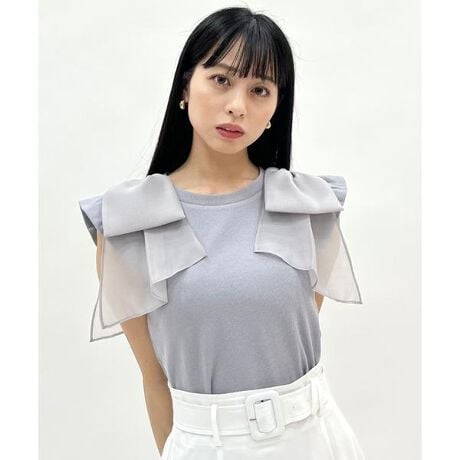 さりげない甘さを添えるショルダーリボンカットトップス【Design】・肩にあしらったリボンデザインがポイントのカットトップス。・ひらりと揺れるフリルスリーブが、華やかでフェミニンな印象をプラス♪・ノースリーブデザインで、すっきりと軽やかに着こなせる一枚。・シンプルな中にフェミニンなアクセントをプラスし、コーディネートを華やかに仕上げます♪・すっきりとしたシルエットでバランスよく着こなせる一枚◎・スカートにもパンツにも合わせやすく、幅広いスタイリングに活躍します!・被り仕様【Fabric】・やわらかく肌なじみの良いカットソー素材を使用。・伸縮性があり、快適な着心地に。・ご自宅でお手入れが出来るのも嬉しいポイント♪・ホワイト、ピンク、ブルー、ブラックの4色展開となります。【Care】手洗い可能