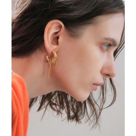 動くたびに繊細なチェーンが揺れ、耳元に華やかな印象を添えるイヤリング。