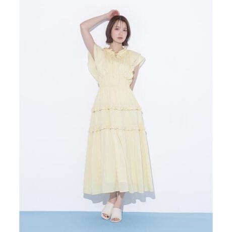 フリルとティアードが華やかなワンピース。ボリューム感のあるシルエットで女性らしさを叶えます。肩まわりのラッフルフリルで二の腕をカバー。軽やかな素材で着心地が良く、特別な日やお出かけにもおすすめです。※撮影時照明の関係により、色味が違って見える場合がございます。またパソコン・スマートフォンなどの環境により、若干製品と画像のカラーが異なる場合もございます。予めご了承ください。商品の色味は、商品単品画像をご参照下さい。※商品画像はサンプルのため、色味やサイズ等の仕様に変更がある場合がございますので、予めご了承ください。