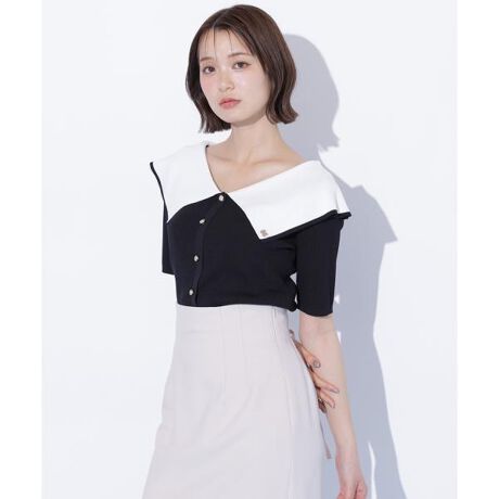 大きめの襟が目を引くリブニット。顔まわりを華やかに見せ、一枚でコーディネートの主役に。フィット感のあるシルエットが女性らしさを演出。デニムでカジュアルに、スカートでフェミニンスタイルにも着回せます。※撮影時照明の関係により、色味が違って見える場合がございます。またパソコン・スマートフォンなどの環境により、若干製品と画像のカラーが異なる場合もございます。予めご了承ください。商品の色味は、商品単品画像をご参照下さい。※商品画像はサンプルのため、色味やサイズ等の仕様に変更がある場合がございますので、予めご了承ください。