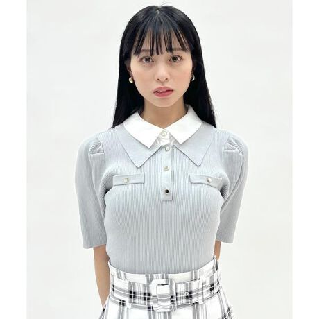 レイヤード風デザインでこなれ感を演出する上品カラーニット【Design】・重ね着しているかのようなレイヤードカラーデザインが特徴のニットトップス。・ポロシャツのような襟付きデザインがきちんと感のある上品な印象をプラス。・襟元の配色が顔まわりに立体感を生み、さりげないアクセントに◎・シンプルながらも1枚で着映えし、コーディネートに奥行きをプラスします♪・程よくコンパクトなシルエットで女性らしくすっきりとした印象に!・スカートと合わせてフェミニンに、パンツと合わせてきれいめカジュアルにも◎・ボタン開き、被り仕様。【Fabric】・やわらかく肌触りの良いニット素材を使用。・程よい伸縮性があり、快適な着心地を叶えます。・ご自宅でお手入れが出来るのも嬉しいポイント♪・ホワイト、サックス、ライトグレー、ネイビーの4色展開となります。【Care】手洗い可能
