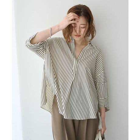 スキッパーデザインで首元がすっきりとした印象に仕上がります。