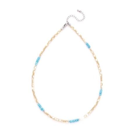 カラーミックスが春夏らしいネックレス。胸元にさりげない輝きと上品さをプラスします。シンプルなデザインなので、お持ちのネックレスとの重ねづけも楽しめます。※モデルの着用画像の場合、光の当たり具合により、実際の色味と異なって見えることがございます。色味は、商品単体の画像をご参照ください。