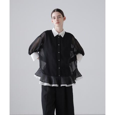 裾部分がレイヤーになりペプラムデザインが特徴のブラウスです。