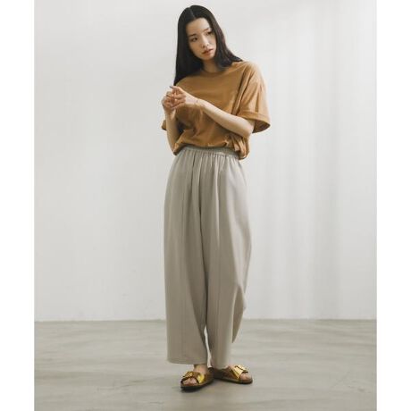 上品な梳毛調で、しわになりにくい国内素材を使用したコクーンイージーパンツ。