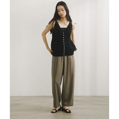 上品な梳毛調で、しわになりにくい国内素材を使用したコクーンイージーパンツ。