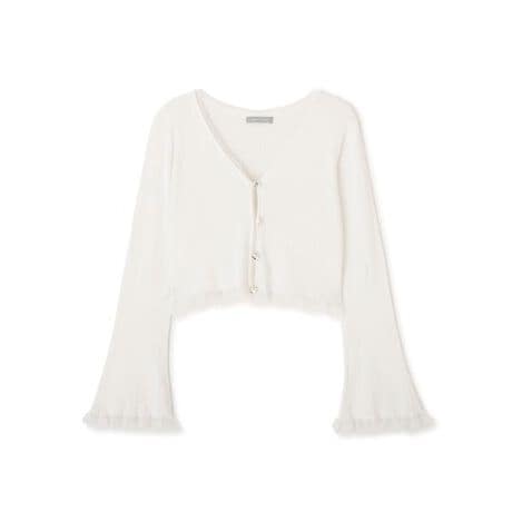 襟、袖口、裾のシアートリムがポイントのショートカーディガン。軽やかな素材が女性らしい抜け感を演出します。コンパクトな丈感で、ワンピースやハイウエストボトムスと相性バツグン。羽織るだけでコーディネートを華やかに見せるデザイン。ロングシーズン着用でき、デイリーに活躍します。※撮影時照明の関係により、色味が違って見える場合がございます。またパソコン・スマートフォンなどの環境により、若干製品と画像のカラーが異なる場合もございます。予めご了承ください。商品の色味は、商品単品画像をご参照下さい。※商品画像はサンプルのため、色味やサイズ等の仕様に変更がある場合がございますので、予めご了承ください。
