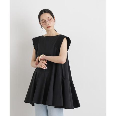 肩部分に施したシャーリングが目を惹くノースリーブブラウス。一枚で着映えしつつ、パンツとのレイヤードでバランスよく着こなせるアイテムです。