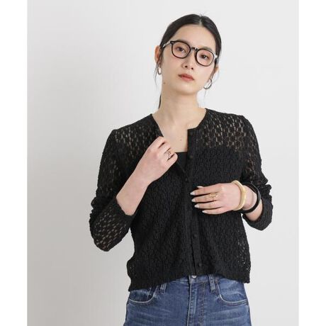 ・表情のあるシュリンクフラワーレースが印象的なカットカーディガン