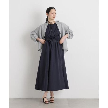 ギャザーディティールから広がるAラインがリラックス感のあるマキシ丈ワンピース。カジュアルスポーツに寄りがちな本格撥水機能素材でありながら、女性らしくきれいめに仕上げ、通勤などデイリーにも着こなせるように仕上げた毎年人気の撥水シリーズです。