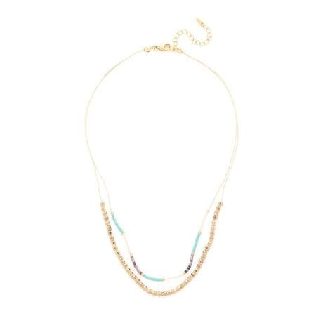 [型番:1316190008]2連のカラフルロングネックレス。異なるモチーフをあしらい、一本でレイヤードスタイルが楽しめます。シンプルながらも存在感があり、幅広いシーンで活躍します。※モデルの着用画像の場合、光の当たり具合により、実際の色味と異なって見えることがございます。色味は、商品単体の画像をご参照ください。