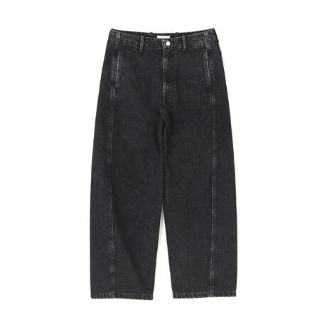 立体裁断にて製作されたデニム素材のトラウザーズ。