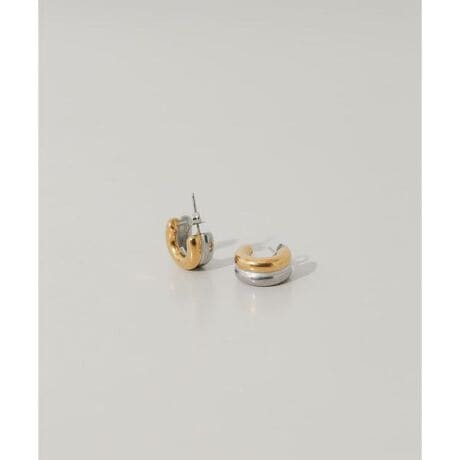 ゴールドとシルバーのコンビカラーが目を惹く、ミニマルなフープピアス。