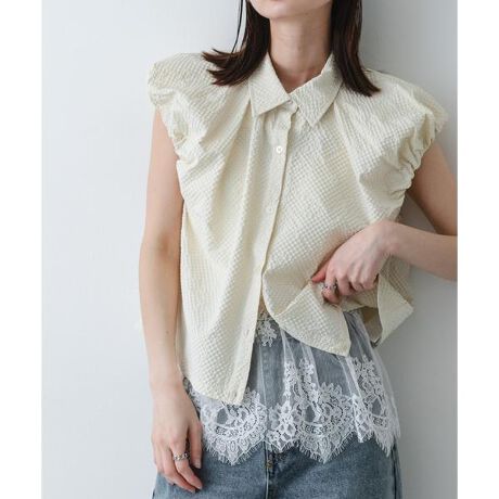 ・裾に贅沢にあしらわれたレースが最大のデザインポイント。一枚での着用はもちろん、トップスの裾から覗かせるレイヤードスタイルも印象的に