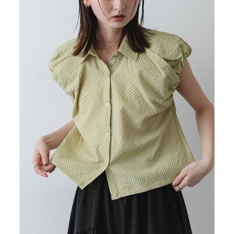 シアーサッカーバルーンスリーブシャツ